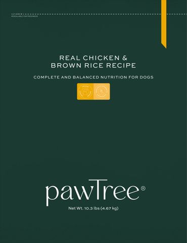 Your puppy will be eating pawTree dry food. CHICKEN & BROWN RICE. In their morning bowls they also get Gastro Pro Plus, Salmon Oil & ImmunoShroom.